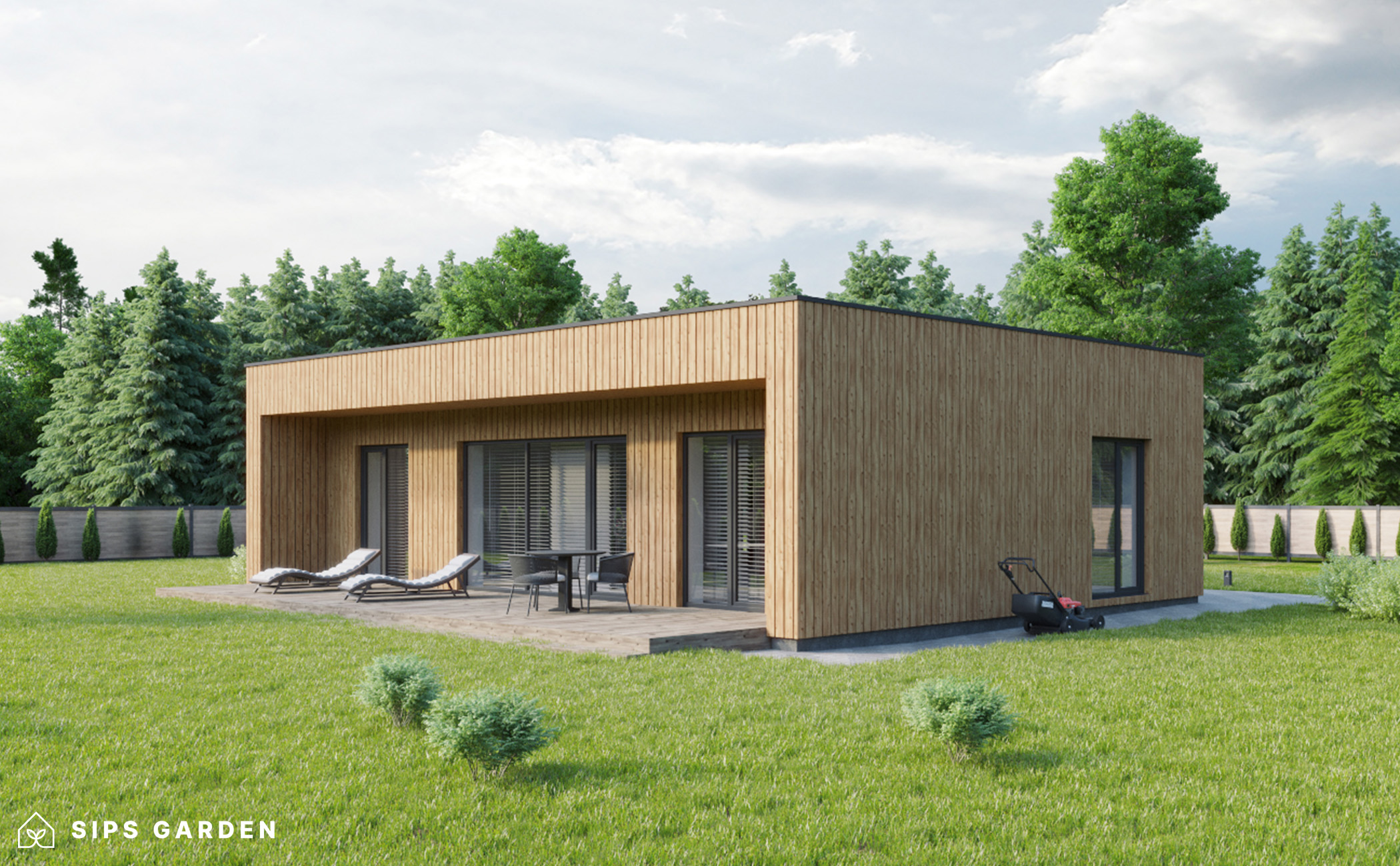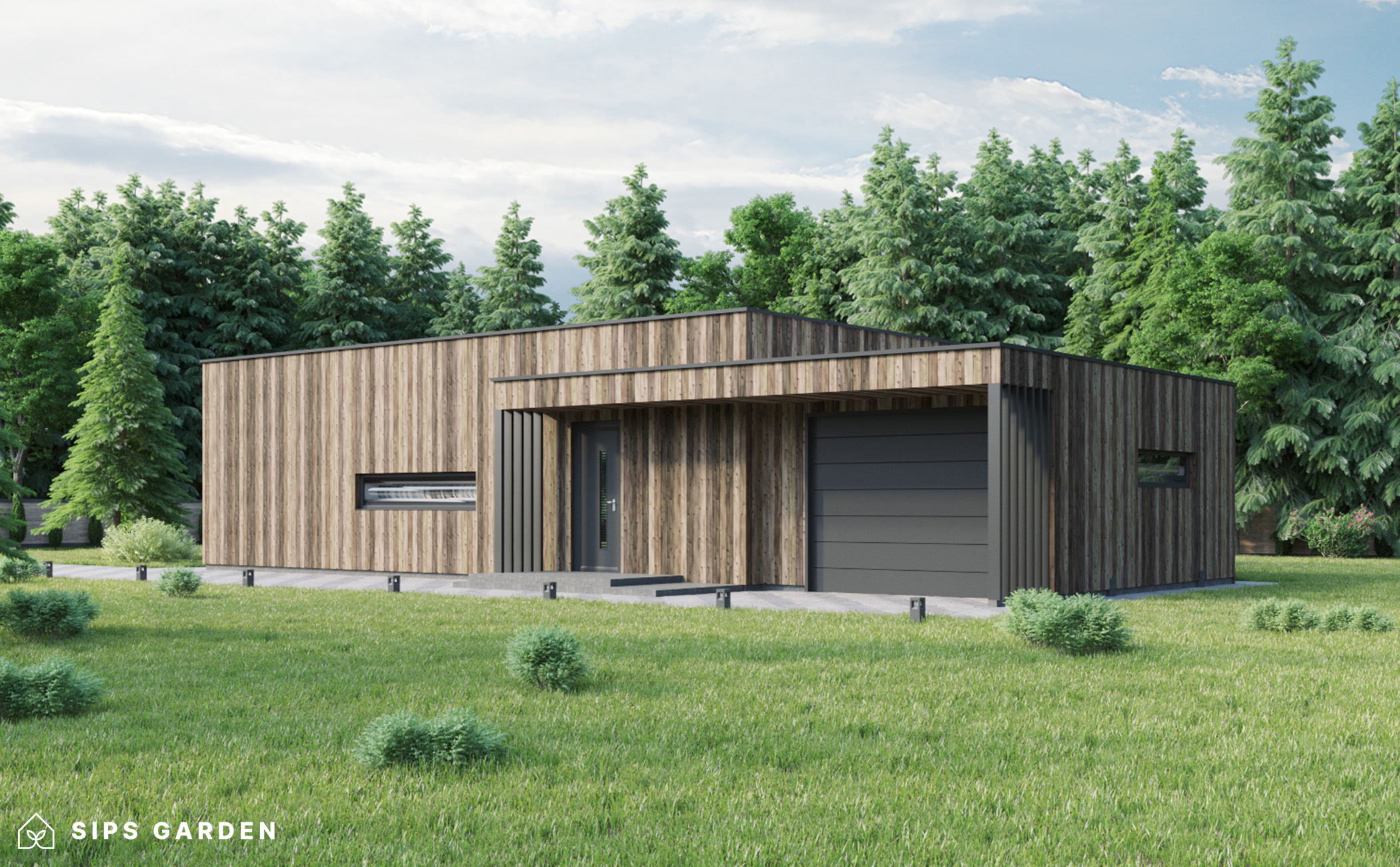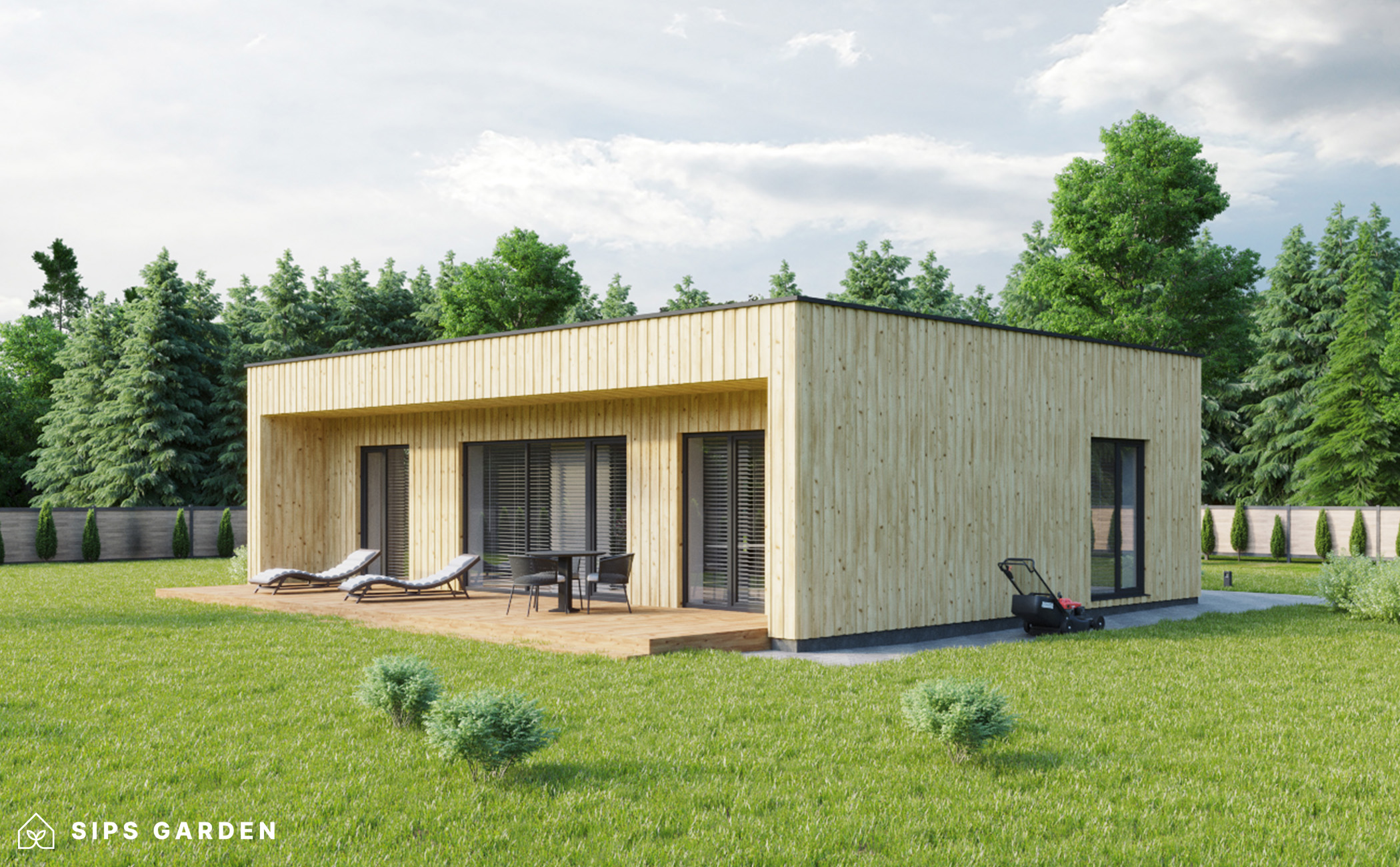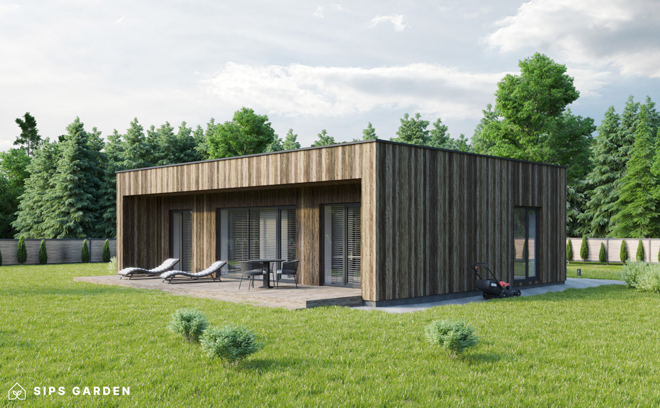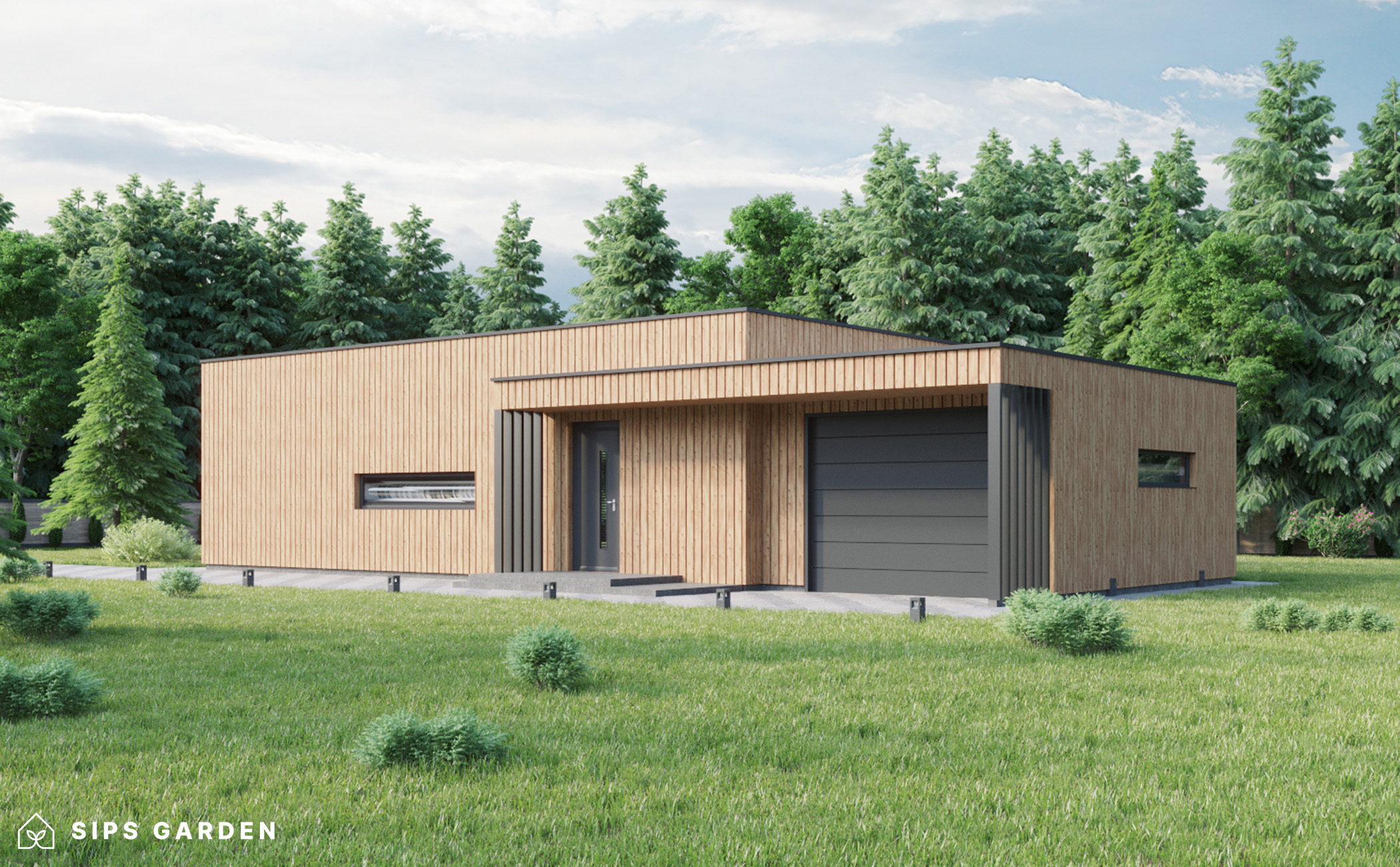 Este producto está fabricado con un avanzado sistema SIP (siglas en ingles, Paneles Aislantes Estructurales) de alta calidad y eficiencia energética, que garantiza un aislamiento superior y una larga durabilidad. El exterior cuenta con ventanas y puertas de doble acristalamiento de PVC de color gris antracita, complementadas con una cubierta de tejado de EPDM, un resistente canalón de acero para la lluvia y elegantes detalles de acabado de acero, todos ellos incluidos como elementos estándar.