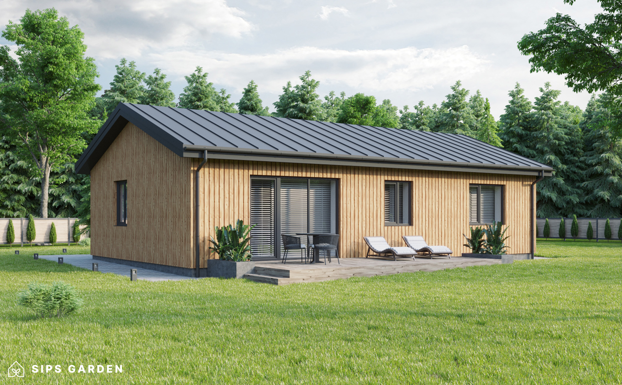 Este producto está fabricado con un avanzado sistema SIP (siglas en ingles, Paneles Aislantes Estructurales) de alta calidad y eficiencia energética, que garantiza un aislamiento superior y una larga durabilidad. El exterior cuenta con ventanas y puertas de doble acristalamiento de PVC de color gris antracita, complementadas con una cubierta de tejado de EPDM, un resistente canalón de acero para la lluvia y elegantes detalles de acabado de acero, todos ellos incluidos como elementos estándar.