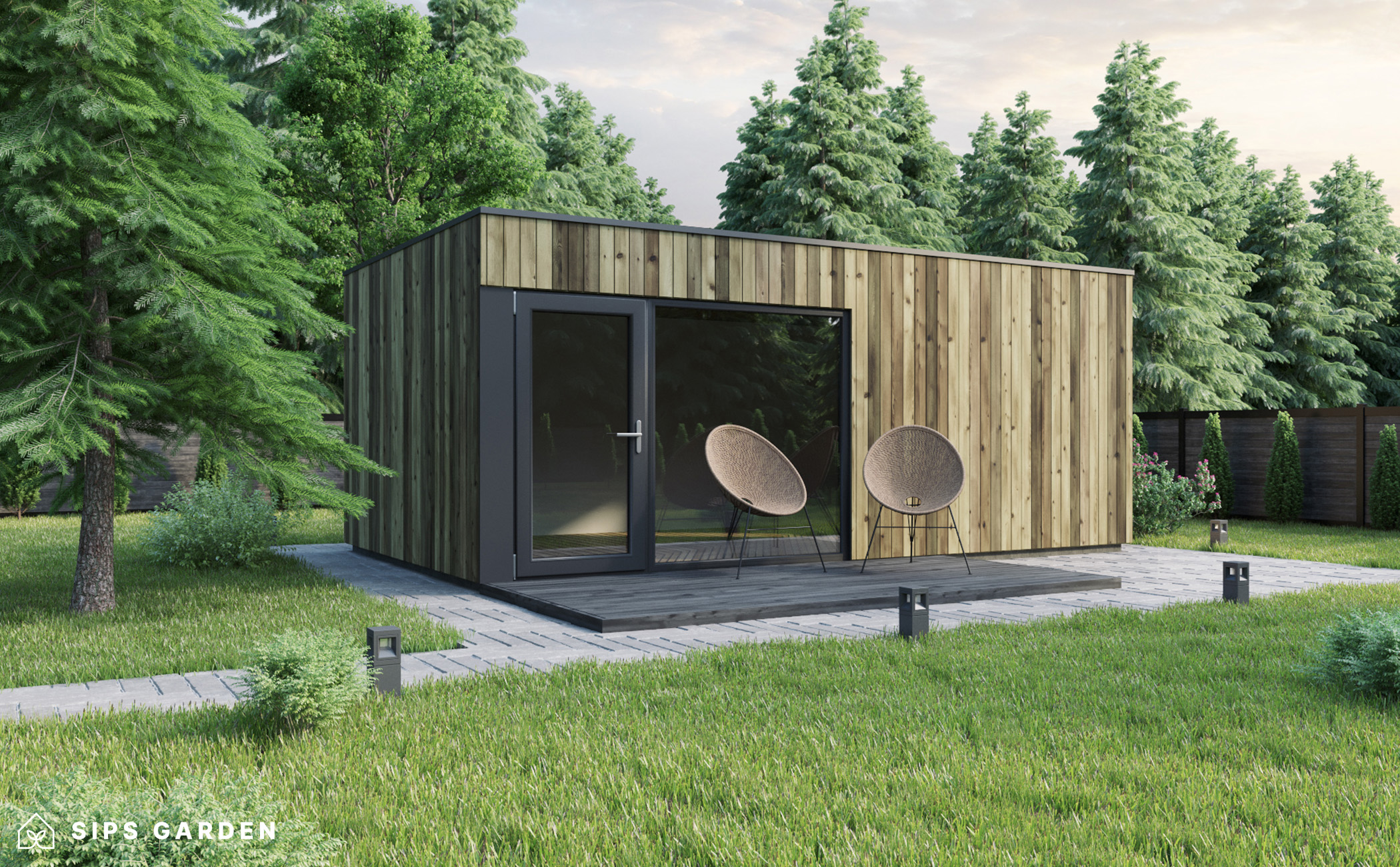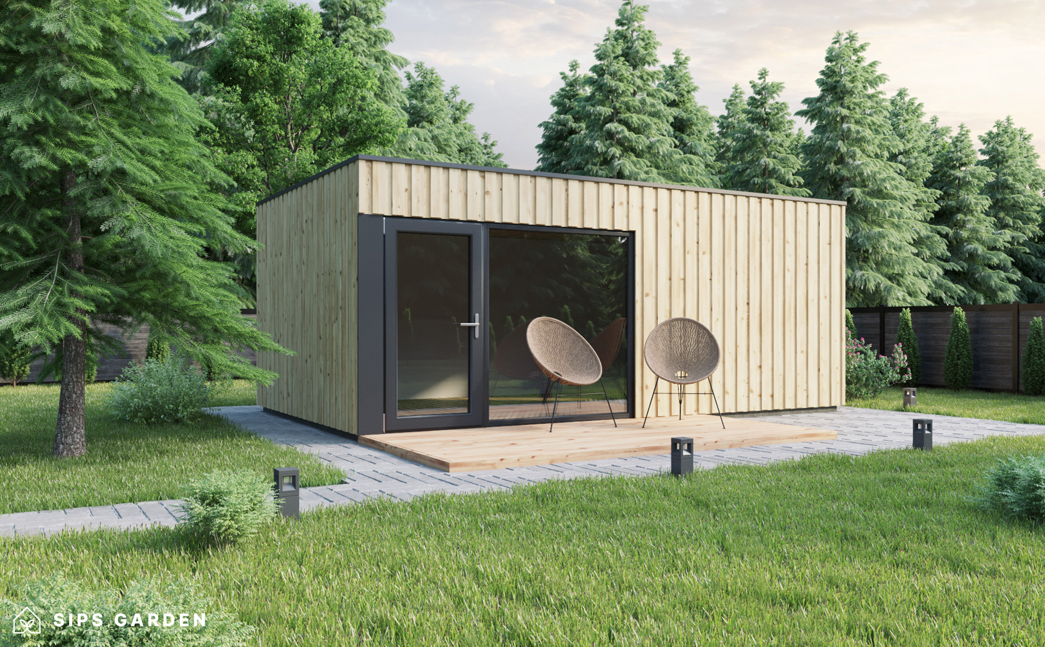 Nuestro KIT ofrece todos los materiales esenciales y las herramientas básicas necesarias para construir su propia estructura de jardín. Incluye paneles SIP precortados, madera estructural, tornillos, clavos y un completo manual de instrucciones. Además, el KIT incluye ventanas y puertas, el acabado exterior que elija y una cubierta para el tejado. Los productos de la categoría Casetas de jardín también vienen con un KIT de acabado interior, que incluye molduras de madera natural y suelo laminado.