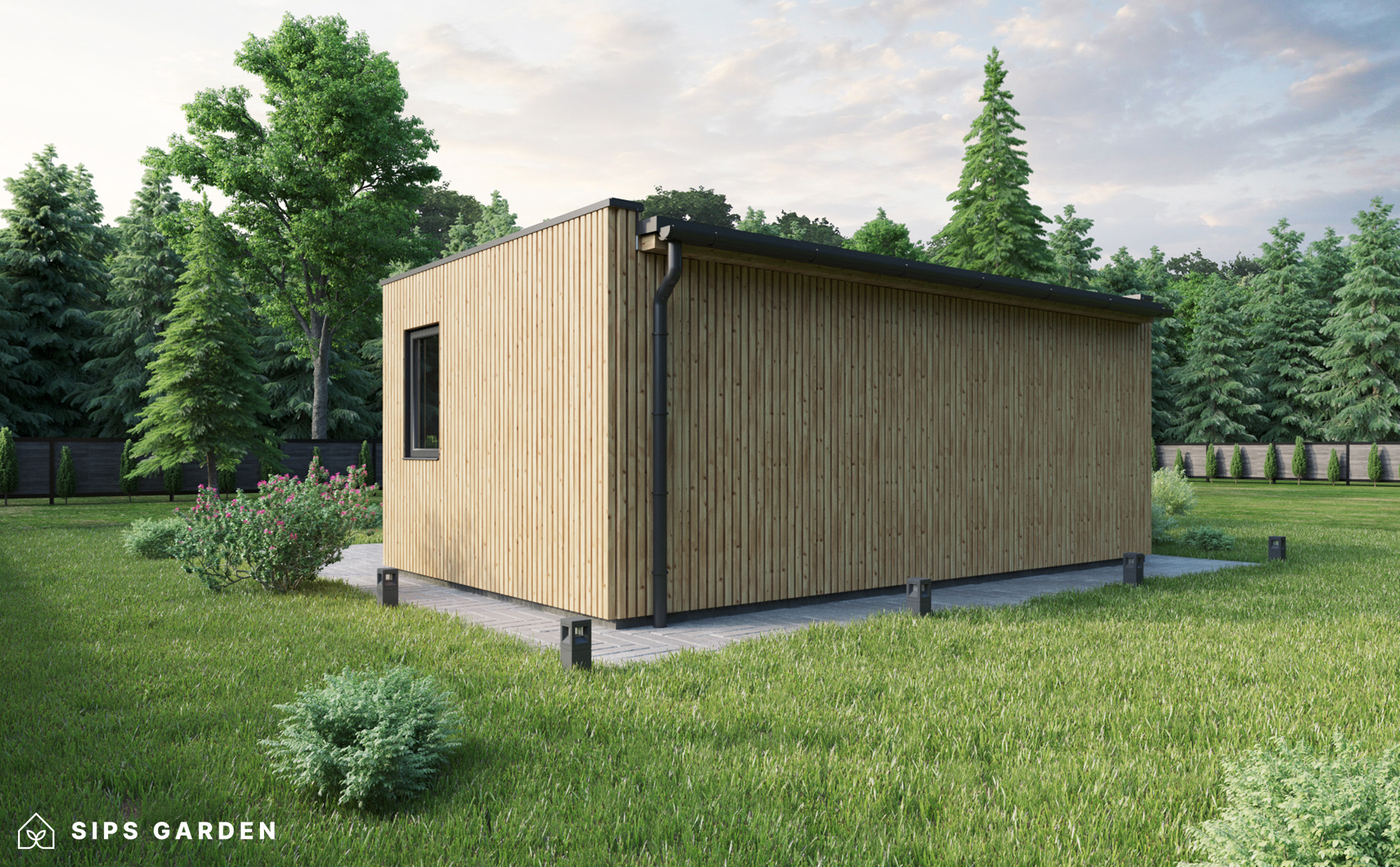 Este producto está fabricado con un avanzado sistema SIP (siglas en ingles, Paneles Aislantes Estructurales) de alta calidad y eficiencia energética, que garantiza un aislamiento superior y una larga durabilidad. El exterior cuenta con ventanas y puertas de doble acristalamiento de PVC de color gris antracita, complementadas con una cubierta de tejado de EPDM, un resistente canalón de acero para la lluvia y elegantes detalles de acabado de acero, todos ellos incluidos como elementos estándar.